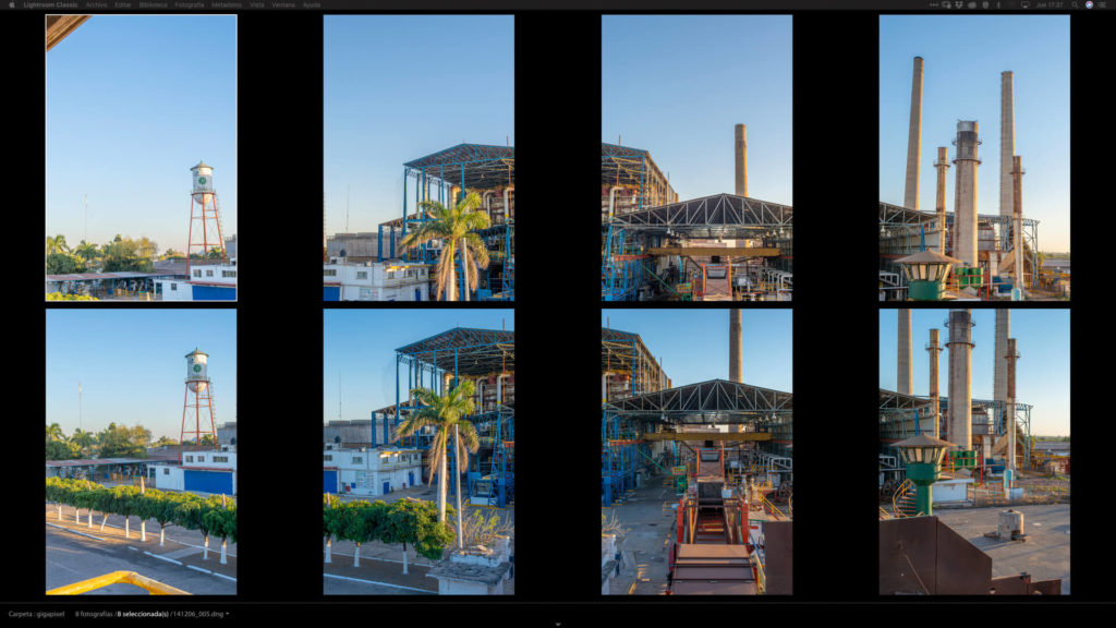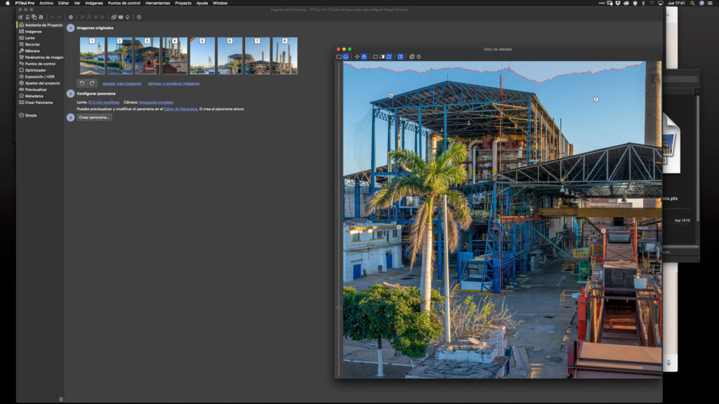 El pegado (stitching) de las fotografías se hace con PTGui Pro. Este programa se usa también para hacer las fotografías de 360 grados.